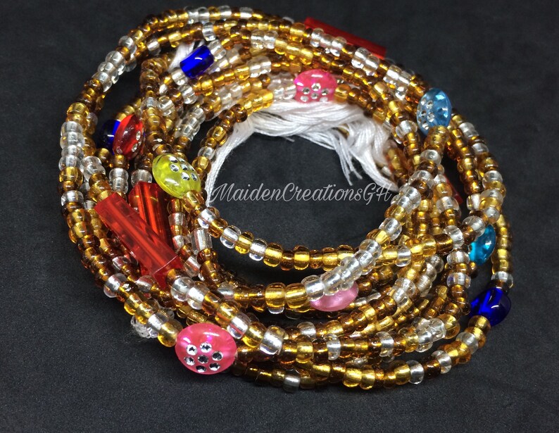 Amazon.com: Gold Waist Beads, African Waist Bead, Ghana ... from images-na.ssl-images-amazon.com Glass beads, european beads, tibetan beads, gemstone beads, acrylic beads etc. Cotton string, scissors, beads of choice, & measuring tape. How do you make a waist bead chest?